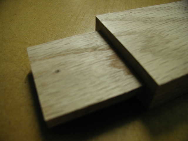 I first make a light cut all the way around the tenon piece, to establish a clean shoulder. You can see here how clean the tenon and shoulder is cut.