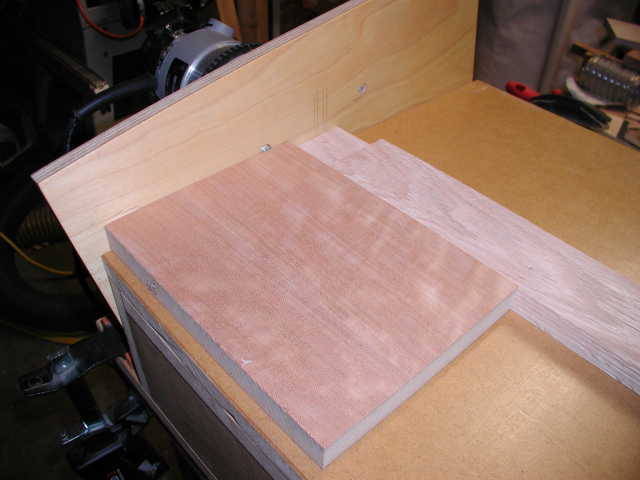 On the far side of the fence, you can just see the router. On the right is the dust collection. It is not hooked to the big dust collector in the background, but to a shop vacuum. The stronger static draw of the vacuum is an advantage in this use.
